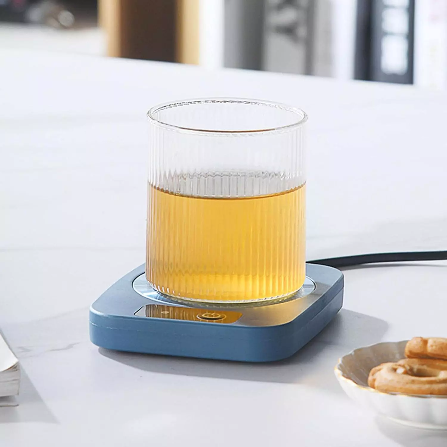 Scaldabicchiere elettrico: mantieni le tue bevande alla temperatura ideale di 55 °C con un semplice tocco. Adatto a caffè, tè e cioccolata calda, funziona con vari contenitori (vetro, metallo, plastica).
