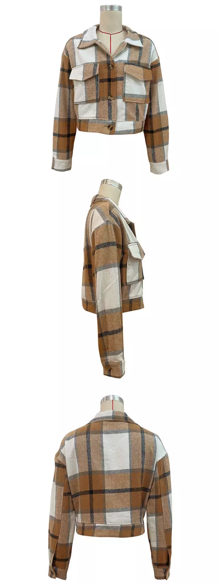 Recensisci per primo “Giacca da donna corta a quadri con risvolti, tasche, bottoni e maniche lunghe fashion”