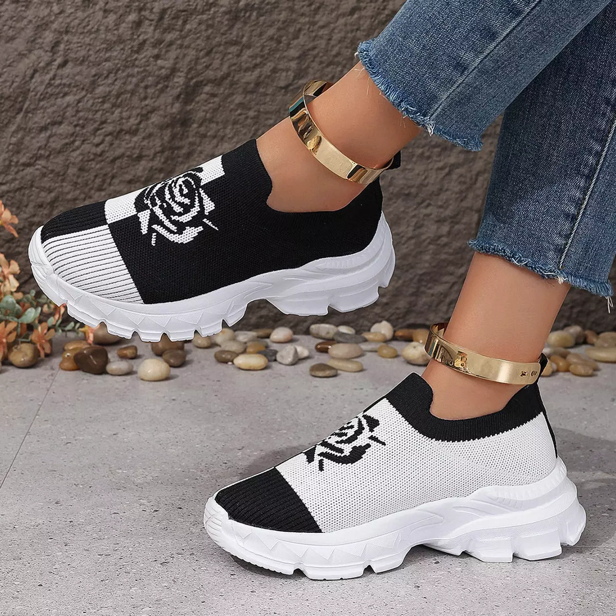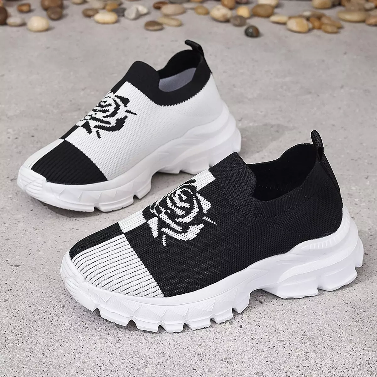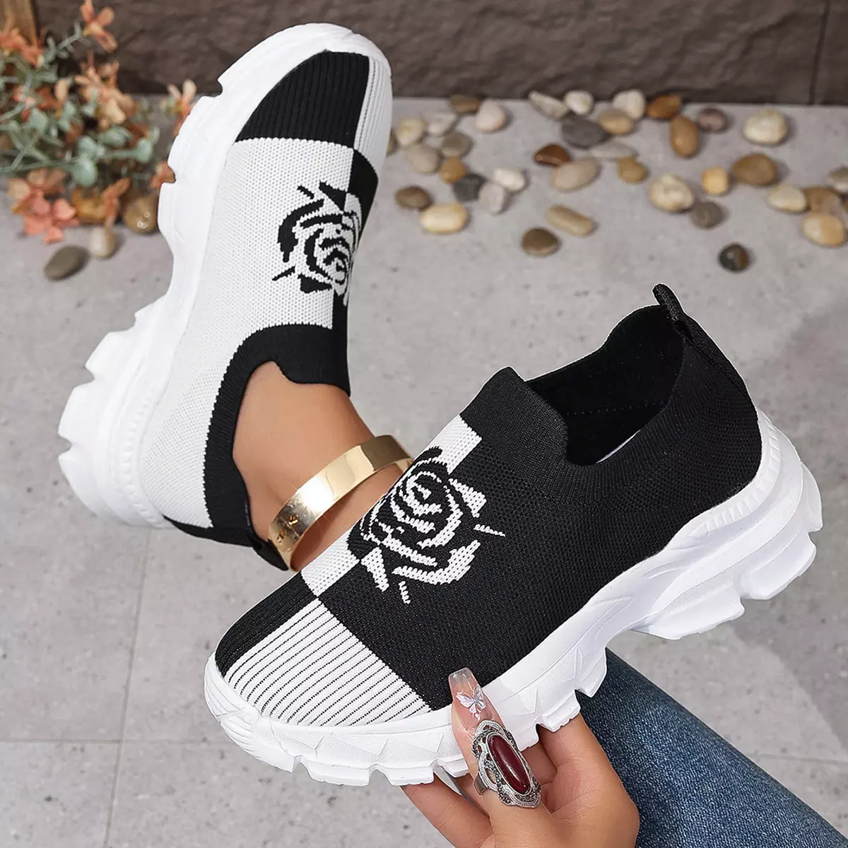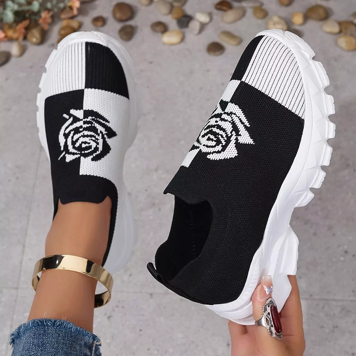 Sneakers da donna sportive con motivo a rose e suola morbida, ideali per comfort e leggerezza. Realizzate in materiali traspiranti, sfoggiano un elegante design a scacchi bianco e nero per un tocco di originalità.